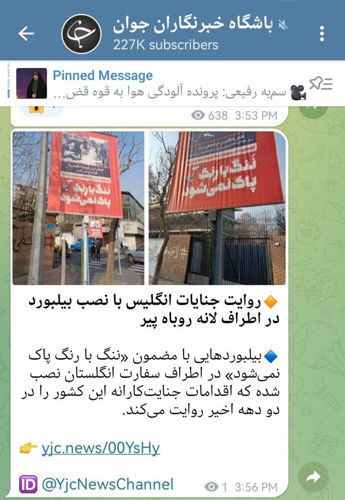 باشگاه خبرنگاران جوان، وابسته به صدا و سیما برای اطلاعرسانی بیلبوردهای شهرداری تهران مقابل سفارت انگلیس ، تیتر عجیب و جنجال برانگیزی زد .